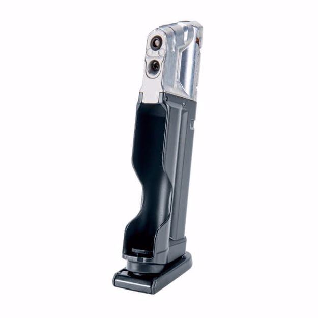 This tagline announces the debut of the first officially licensed GLOCK T4E marker for paintball enthusiasts. Players can now experience the perfection of a .43-caliber GLOCK replica. This extra 8-round magazine, which can hold either paint- or powderballs in caliber .43, also accommodates a 12-gram CO2 cartridge that can be swapped without tools in seconds when on the field. When you need a new cartridge, you just insert it and pierce it with a light blow at the bottom of the magazine.