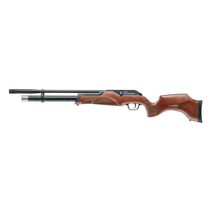 This new German-built Walther MaximaThor repeating compressed air rifle does justice to its name. It produces an impressive muzzle energy of 46 foot-pounds with 5.5 mm or 6.35 mm pellets. The sleek 200-bar air tank includes a built-in pressure indicator and quick-fill opening that provide the capability for multiple shots with a single charge. The MaximaThor has an elegant and durable wood stock and also provides multi-shot capability with the same 8-shot rotary magazine for pellets that the Rotek uses. This powerful rifle features an 11-mm dovetail rail for mounting a telescopic sight. The gun is built for shooting pleasure and accuracy with a rubber recoil pad, a removable 8-shot rotary metal magazine, and a vibration reduction system. This gun is an amazing airgun system that attracts attention from other airgunners who like its unique look and a great set of advanced features.